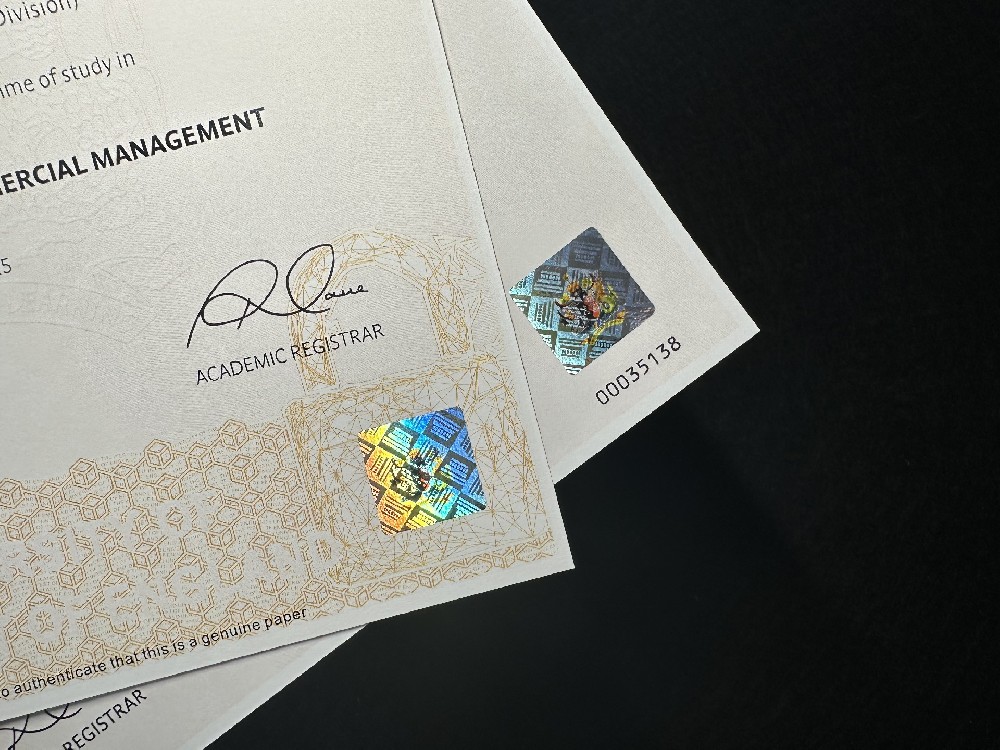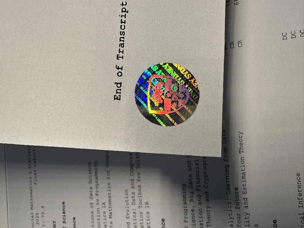 新南威尔士大学毕业证激凸钢印做的很棒,效果几乎跟朋友学校发的证书一样 成绩单底纹也做的很好,底纹线条分明,防伪标工艺做的很棒,推荐这家 价格也实惠